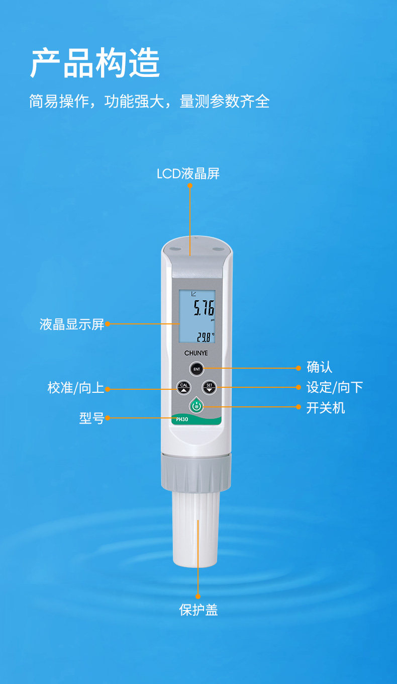实验室里一毫升的水样测试,野外水源的 pH 测定,纸张和皮肤的酸碱度测量。 可以满足您不同的测量需求,体验测试的乐趣。