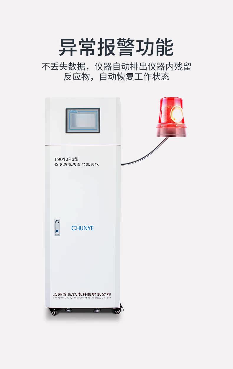 本产品采用分光比色方法测定,水样和调节剂混合后,各类形式的铅转变为铅离子,铅离子在碱性环境和增敏剂存在的情况下,与指示剂反应生成一种带色络合物,监测仪检测此颜色的变化,并把这种变化换算成铅值输出来。生成的带色络合物量相当于铅量。