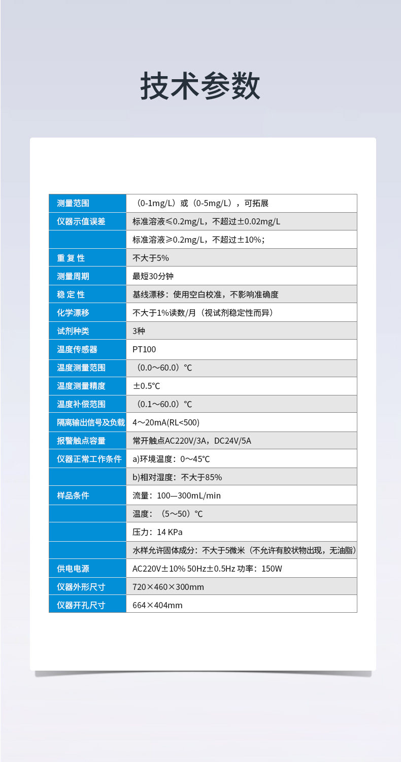 本产品采用分光比色法测定,试样在一定酸度条件下,试样中的亚铁离子与指示剂生成红色配合物,分析仪检测此颜色的变化,并把这种变化换算成铁值输出来,生成的带色配合物量相当于铁量。