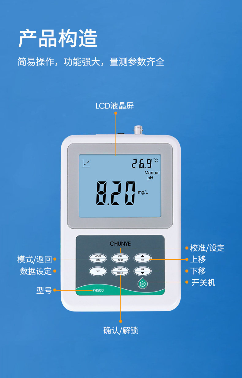 精致小巧的设计理念,为您节省极大空间。已标定点显示,精准测量,方便操作,结合高亮度背光照明,twinno PH500是您用于实验室,工厂,以及学校日常测量工作的可靠伙伴。