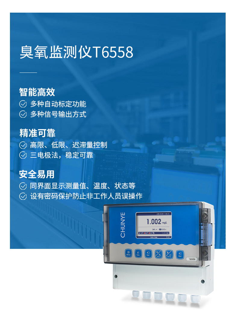 工业在线臭氧监测仪是带微处理器的水质在线监测控制仪。该仪表广泛用于饮用水处理厂、饮用水分布网、游泳池、水质处理工程、污水处理、水质消毒(臭氧发生器配套)等各个行业过程,对水溶液中的臭氧值进行连续监测和控制。