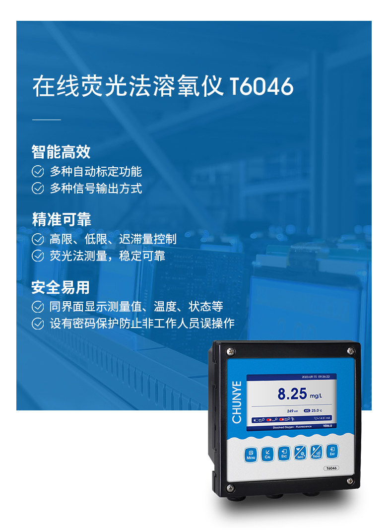 工业在线溶氧仪是带微处理器的水质在线监测控制仪。该仪表配置不同类型的溶氧电极广泛用于电厂、石油化工、冶金电子、矿业、纸业、生物发酵、医药、食品饮料、环保水处理、水产养殖等各个行业;对水溶液的溶解氧值和温度值进行连续监测和控制。