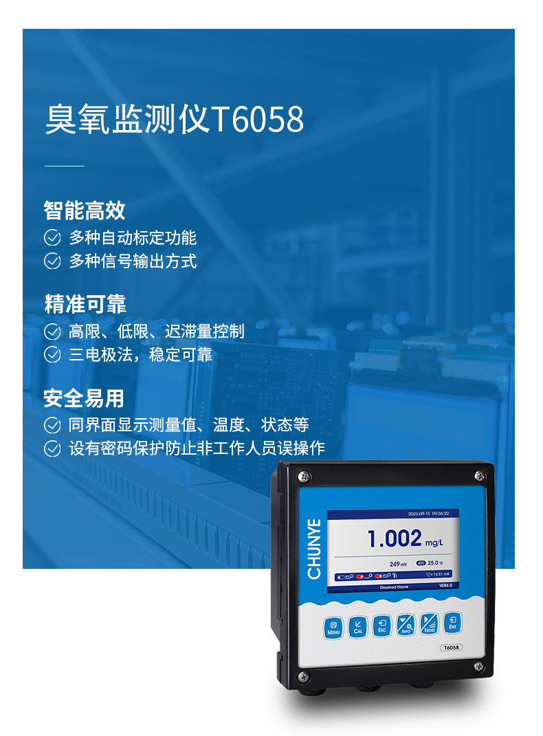 适用于饮用水、工业过程水消毒工艺的臭氧浓度在线监测。