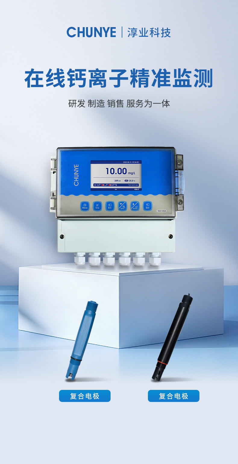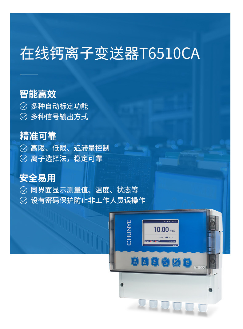 T6510CA 硬度(钙离子)监测仪 工业在线离子监测仪是带微处理器的水质在线监测控制仪。该仪表配置不同类型的离子电极广泛用于电厂、石油化工、冶金电子、采矿业、造纸业、生物发酵工程、医药、食品饮料、环保水处理。对水溶液的离子浓度值进行连续监测和控制。