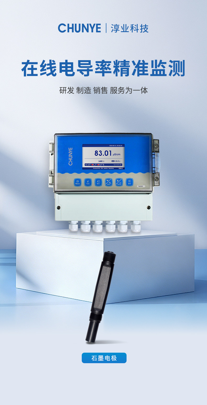 T6535 在线电导率仪 (TDS/盐度) 工业在线电导率仪是带微处理器的水质在线监测控制仪。该仪表广泛用于电厂、石油化工、冶金电子、矿业、纸业、半导体、医药、食品饮料、环保水处理、新型农业种植等各个行业;适用于软化水、原水、蒸汽冷凝水、海水蒸馏以及去离子水等;对水溶液的电导率值、电阻率值、TDS值、盐度和温度值进行连续监测和控制。