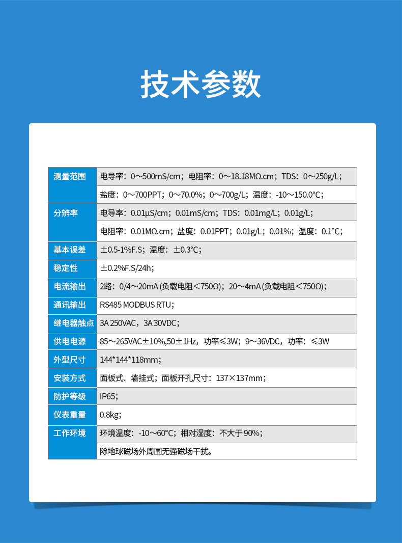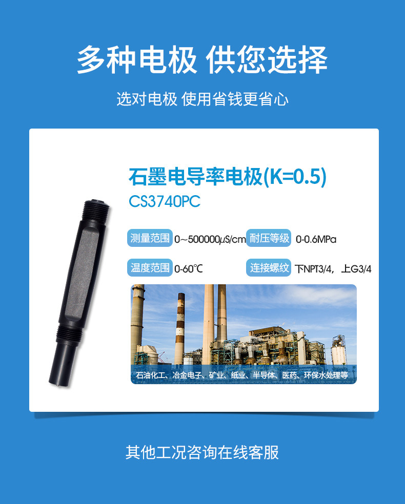 工业在线电导率仪是带微处理器的水质在线监测控制仪。该仪表广泛用于电厂、石油化工、冶金电子、矿业、纸业、半导体、医药、食品饮料、环保水处理、新型农业种植等各个行业;适用于软化水、原水、蒸汽冷凝水、海水蒸馏以及去离子水等;对水溶液的电导率值、电阻率值、TDS值、盐度和温度值进行连续监测和控制。