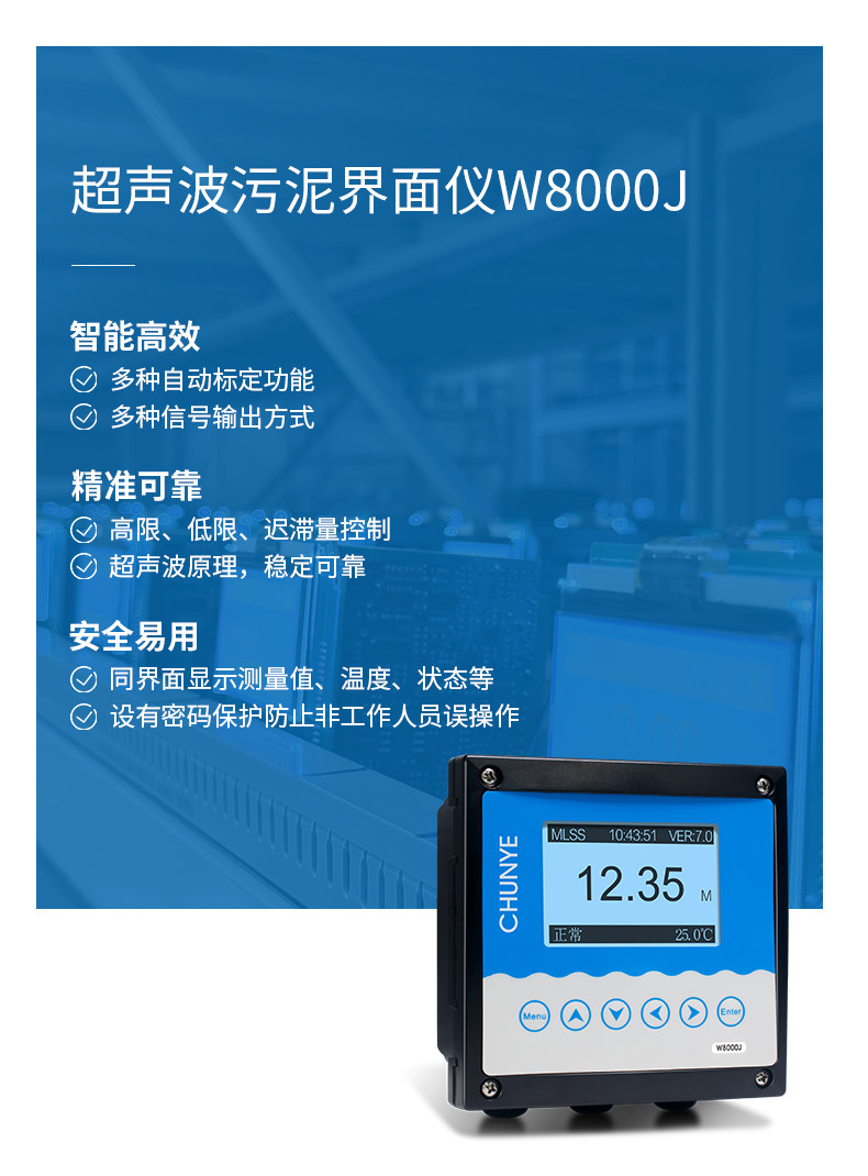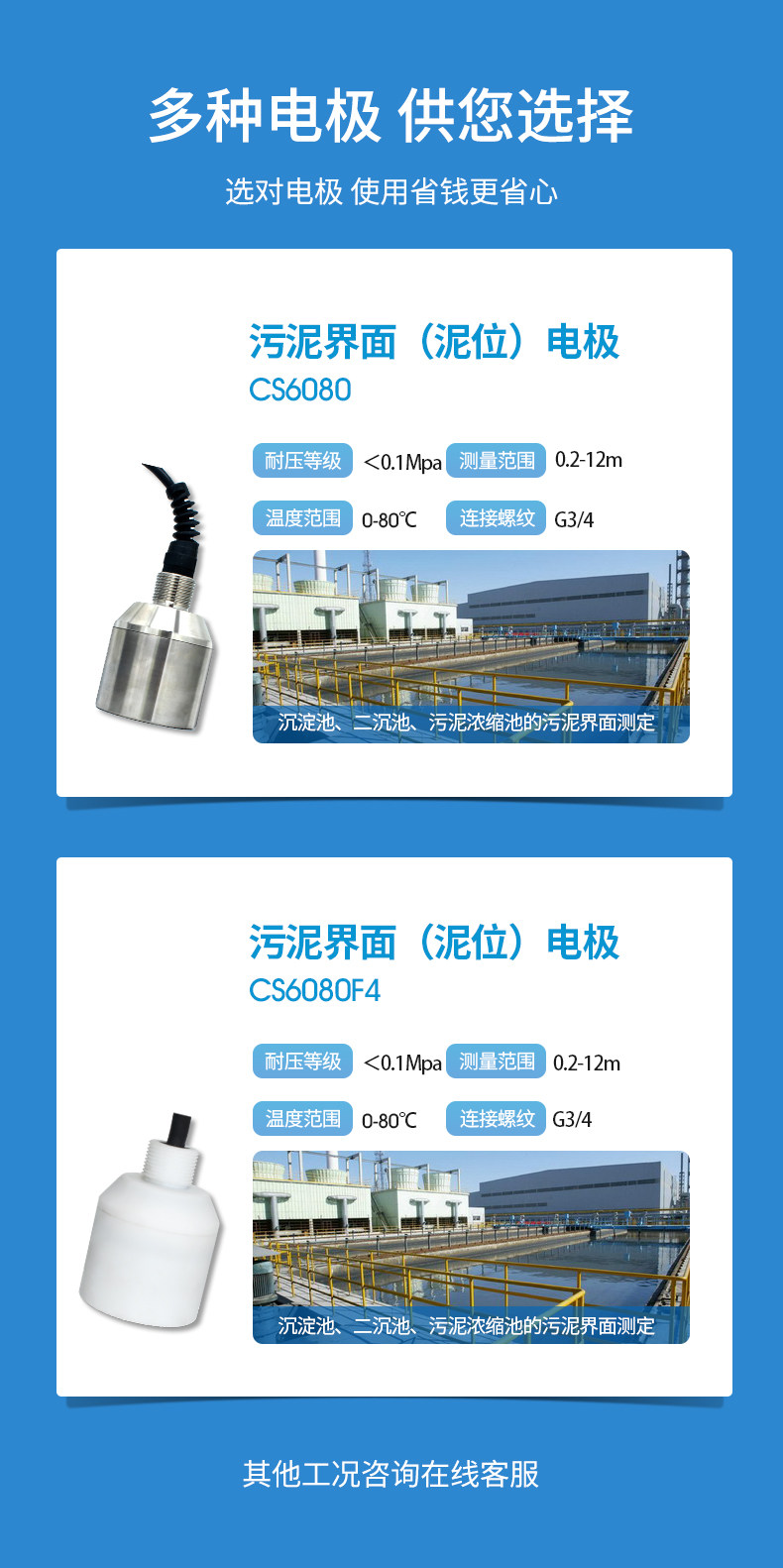 典型应用 在污水处理的沉淀池、二沉池、污泥浓缩池的污泥界面测定;自来水厂沉淀池的泥 位测定,给水厂(沉淀池)、洗砂厂(沉淀池)、电力(灰浆沉淀池)